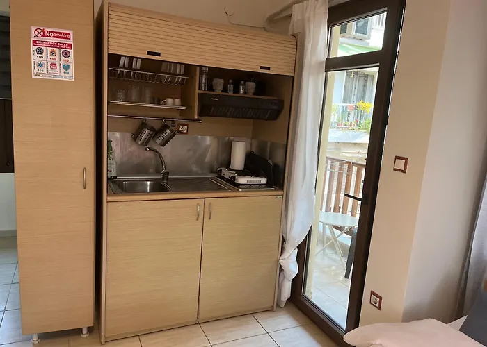 Ano Poli Studio has views of the street. Visitors will enjoy the comfort of a bathroom with hair dryers and bathrobes in this apartment. A washing machine can also be found.